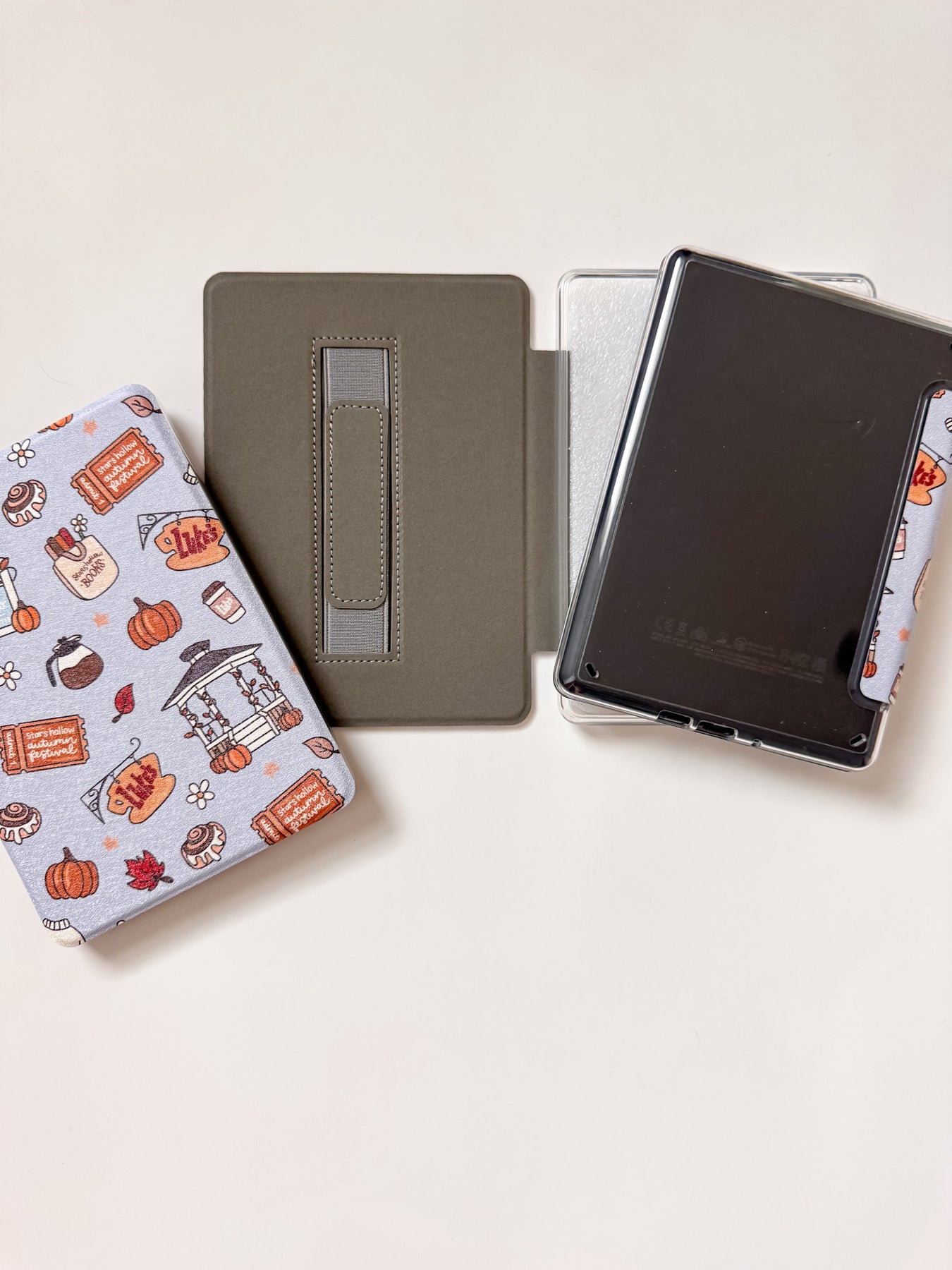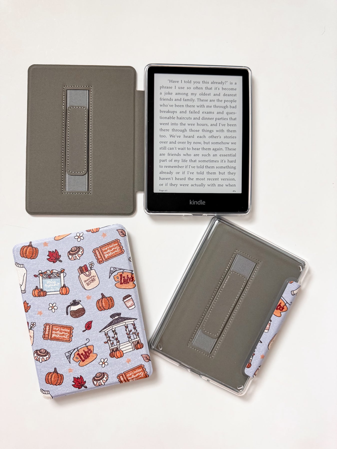Available in two sizes 6.8” for the Paperwhite 11th Gen & 7” for the Paperwhite 12th Gen & Colorsoft. These have magnetic closures, clearbacks & a handle for while you’re reading.