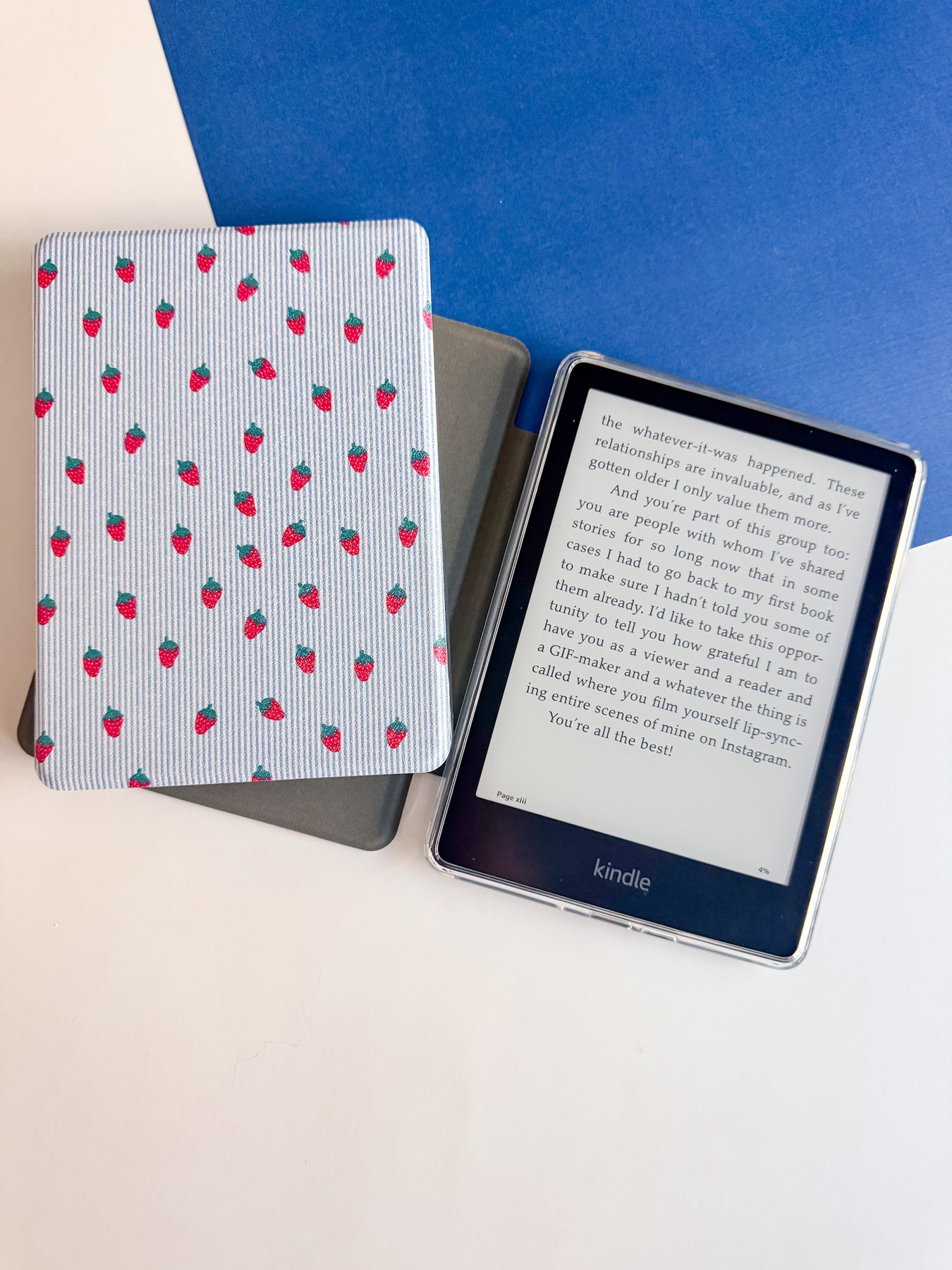 Available in two sizes 6.8” for the Paperwhite 11th Gen & 7” for the Paperwhite 12th Gen & Colorsoft. These have magnetic closures, clearbacks & a handle for while you’re reading.